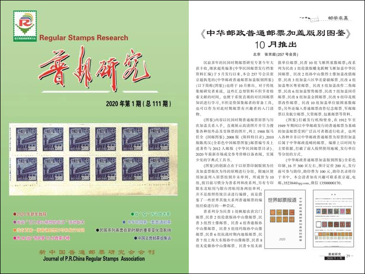 附上昨日陈国成会长主编的收到的《普邮研究》2020年第1期第29页对本图鉴的报道,相关图文欢迎各邮刊、网站、公众号刊发、转载,如需进一步资料敬请联络,媒体或集邮文献代理发行机构可留地址索取纸质32开40页文本说明一份。 |