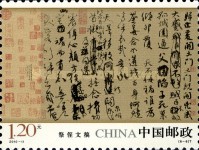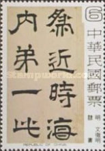 图D131-D135:中国书法5枚/台专141/1978/(D37) 图D131为“晋王羲之行书”,图案选自《快雪时晴帖》纸本,原件横14.8厘米,纵23厘米,墨迹内容:“羲之顿首。快雪时晴。佳想安善。未果为结。力不次。王羲之顿首。山阴张侯。”王羲之,字逸少,东晋书法家,今山东临沂人,后定居浙江绍兴,官至右军将军,会稽内史,王羲之书法,当时就闻名天下,后世更尊之为书圣。《快雪时晴帖》共全文4行,28字,是作为一封信札写就的,其内容是作者在大雪初晴时以愉快心情对亲朋友人的问候,其中或行或楷,或流而止,或止而流,富有独特的节奏韵律,其笔法圆劲古雅,无一笔掉以轻心,无一字不表现出意致的悠闲逸豫,即使偶尔重心忽左忽右,全局依然匀整安稳,不失平衡的美感,被誉为“二十八骊珠”。 图D132为“唐褚遂良楷书”,图案选自《倪宽传赞》,纸本,原件纵24.6厘米,横170.1厘米,墨迹内容:“属皆有功迹见述于世,参其名臣亦其次也臣褚遂良书。”褚遂良,字登善,唐朝政治家、书法家,今浙江杭州人,其书法外柔内刚,苍润秀雅,为“初唐四家”之一。 图D133为“明文征明隶书”,图案选自《跋范庵书石湖诗》,纸本,原件纵15.7厘米,横15.8厘米,墨迹内容:“予吁范庵先生行书为近时海内弟一此非区区私言也”。文征明,明代文学家,书画家,今江苏吴县人,官至翰林待诏,文征明诗文书画并佳,书法温润秀劲,稳重老成,为“明四家”之一。 图D134为“唐怀素草书”,图案选自《自叙帖》,纸本,原件纵28.3厘米,横75.5厘米,墨迹内容:“狂来轻世界,醉里得真如。皆辞旨激切。理识玄奥”。怀素,字藏真,唐代僧人,书法家,今湖南长沙人,俗姓钱,自幼事佛,为玄奘三藏门人。怀素好草书,书法运笔纵横,神采动荡,奇纵变化,超迈前古。 图D135为“宋常杓篆书”,图案选自《宋人词》,绢本,原件纵24.5厘米,横11.1厘米,墨迹内容:“为米折腰,因酒弃家,口体交相累。归去来。谁不遣君归。觉从前俱非今是。露未”。常杓,宋人,生平不详,其书法清秀俊美,古韵浓浓。