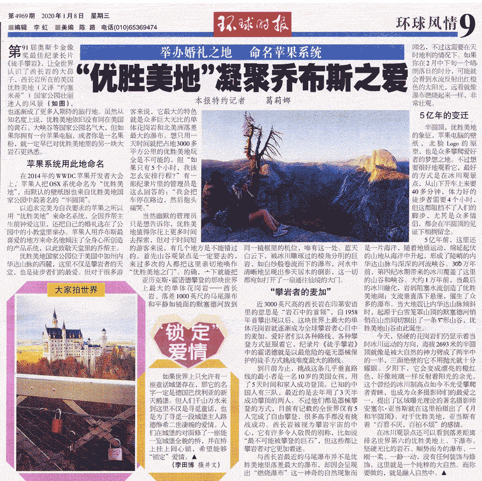 “优胜美地”凝聚乔布斯之爱 环球时报 20200108