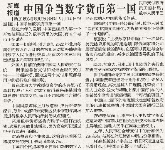 中国正当数字货币第一国 参考消息