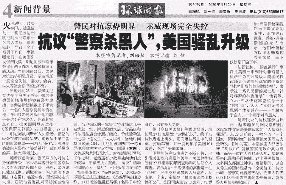 抗议“警察杀黑人”,美骚乱升级 环球时报