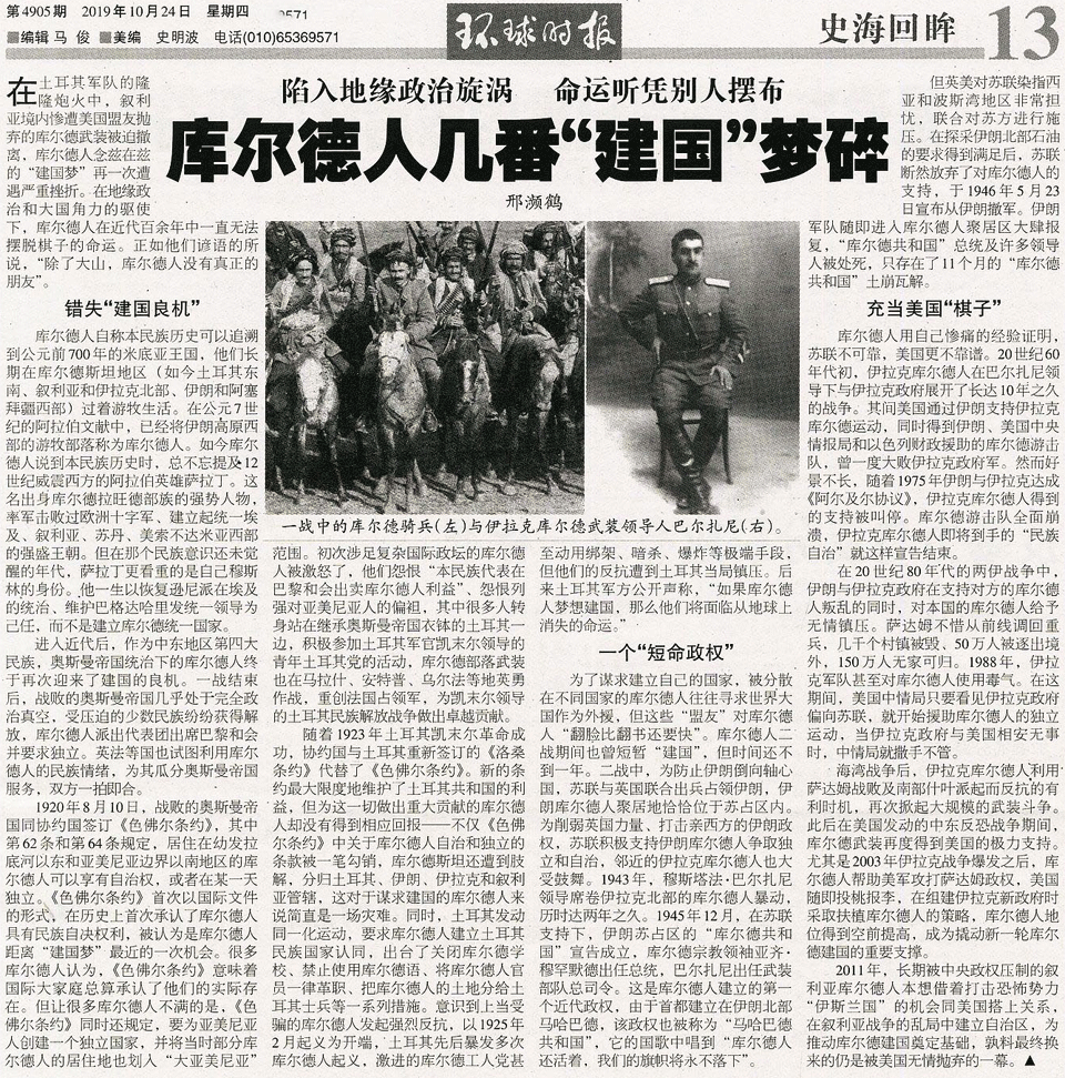 库尔德人几番“建国”梦碎 环球时报 20191024