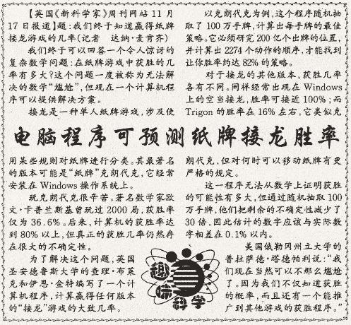 电脑程序可预测纸牌接龙胜率 参考消息 20191120