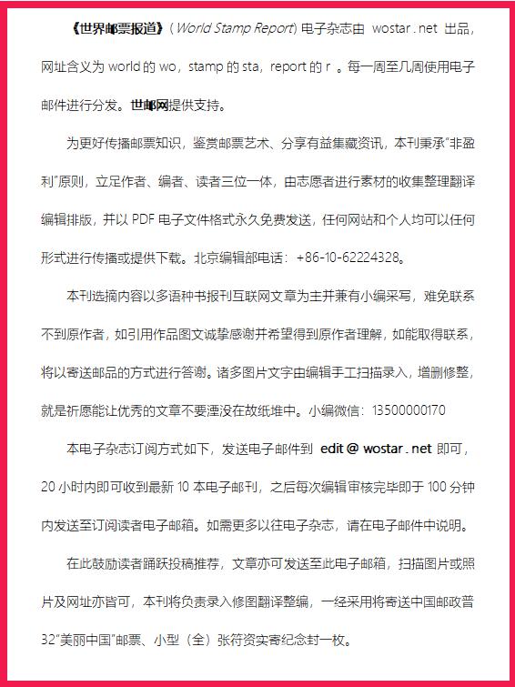 《世界邮票报道》最新及过往电子邮刊 永久免费